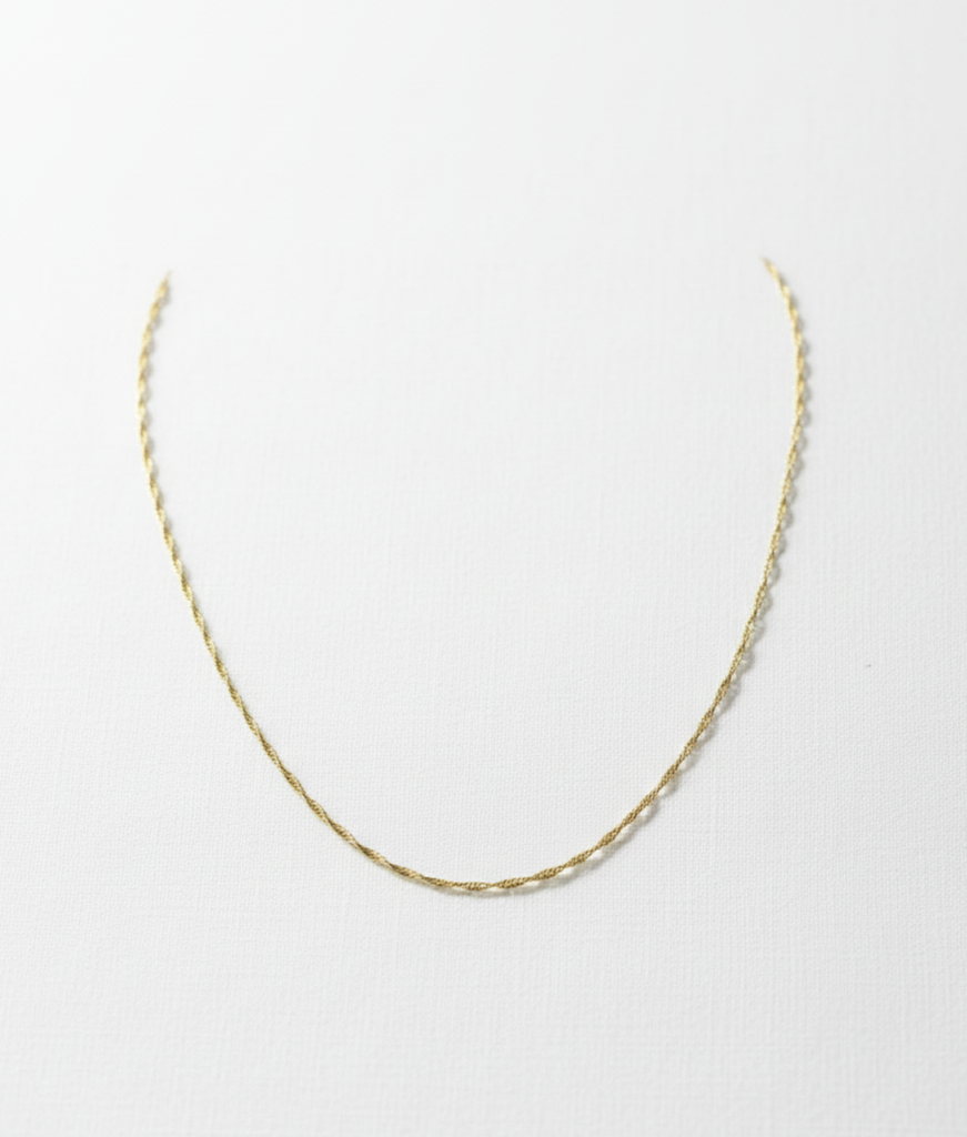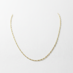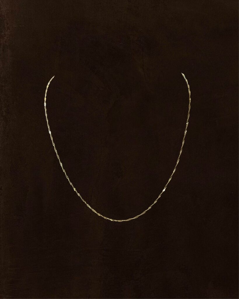 This 17-inch 14k gold chain offers an ultra-light profile at 1.20 g. Simple, slender, and versatile, it is perfect for layering or wearing as a subtle standalone piece.