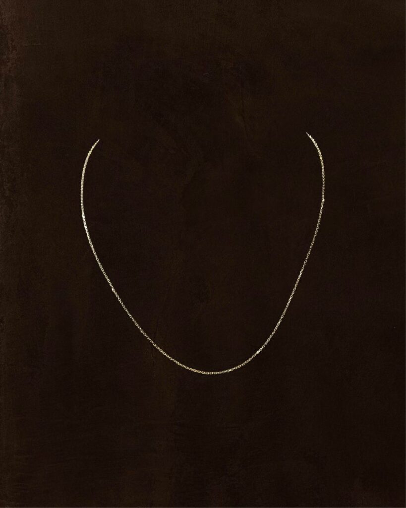A delicate 14k gold chain measuring 17 inches and weighing 1.51 g. Its fine silhouette makes it ideal for everyday wear or pairing with small pendants, bringing a discreet touch of gold to any look.