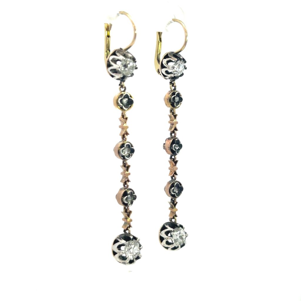 Antique Gold Platinum & Silver Diamond Drop Earrings