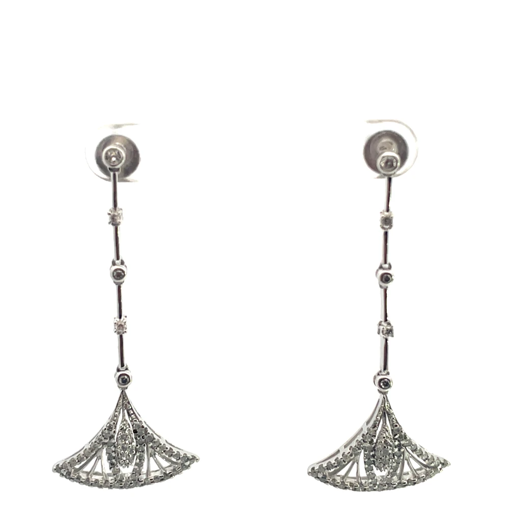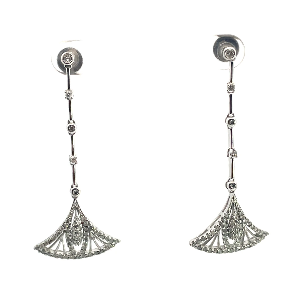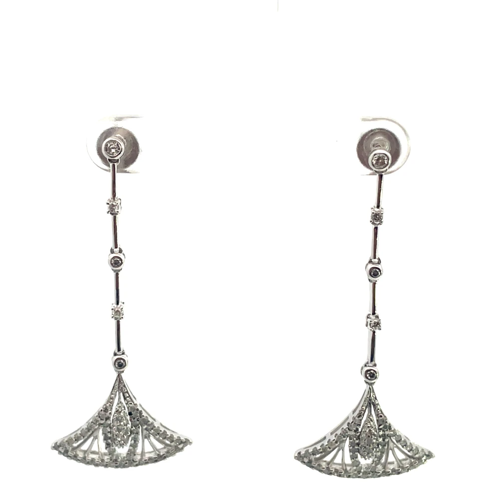 Crafted in 14-karat white gold, these drop earrings are set with 0.80 carat of full-cut diamonds. Weighing 5.60 grams, they combine delicate movement with subtle sparkle — perfect for adding refined elegance to any occasion.