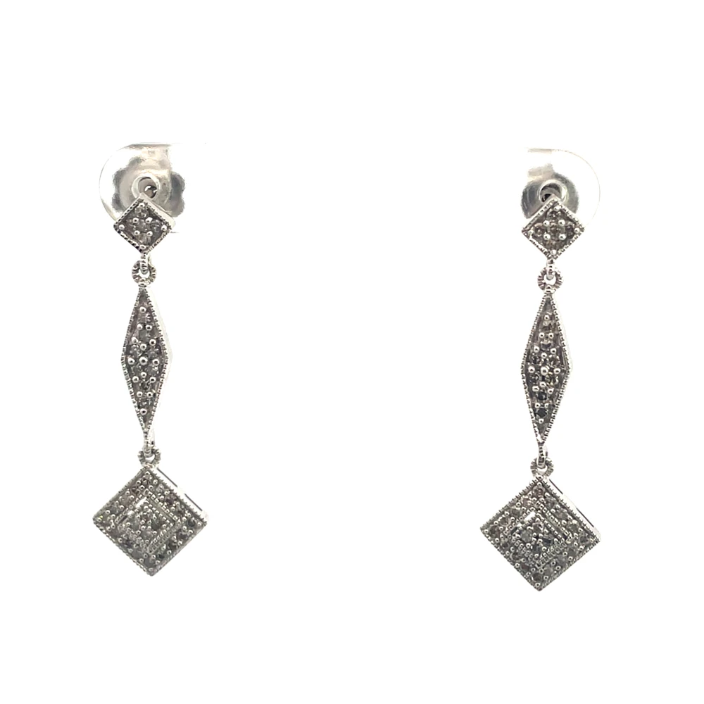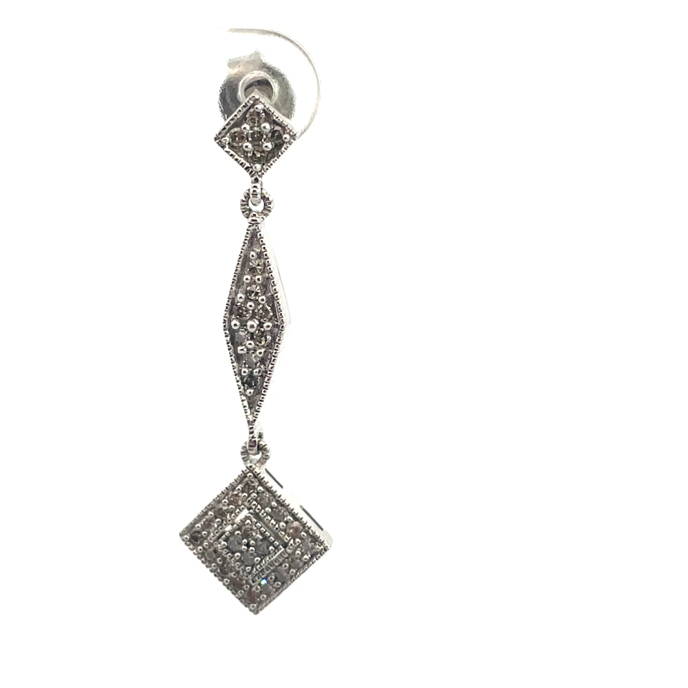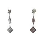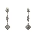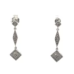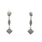 Crafted in 14K white gold, these drop earrings feature a geometric silhouette composed of diamond-shaped and marquise elements. Set with 0.80 carats of natural diamonds and weighing 4.18 grams, the articulated design offers elegant movement and subtle vintage detail.