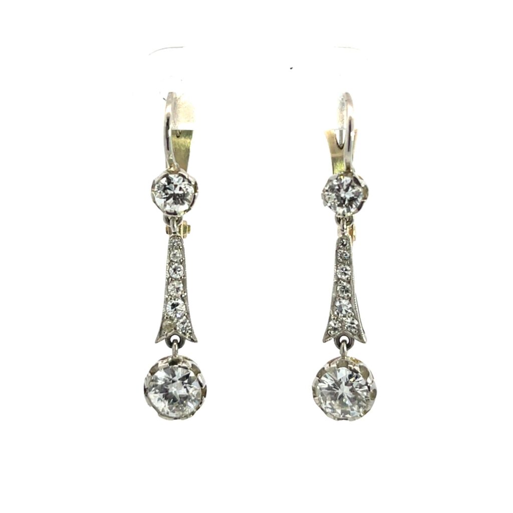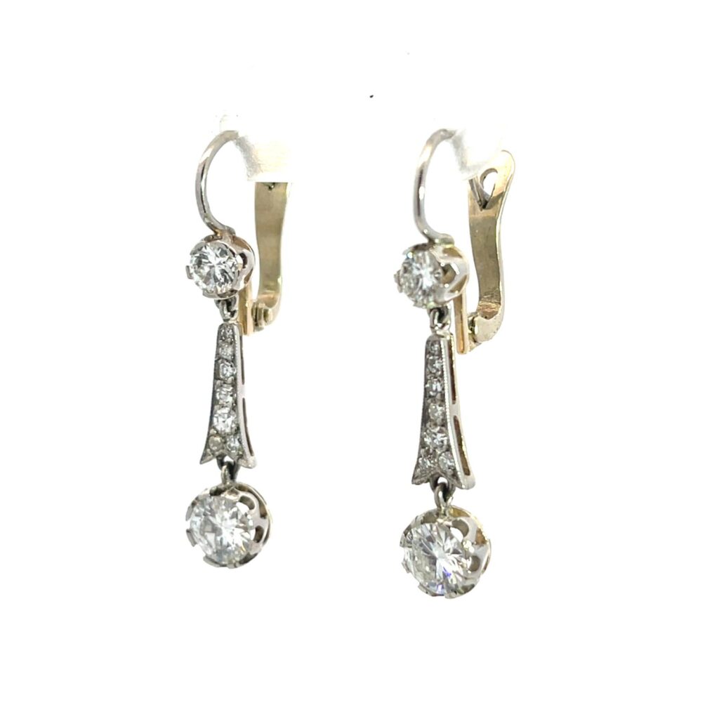 Gold & Platinum Edwardian Style Diamond Drop Earrings