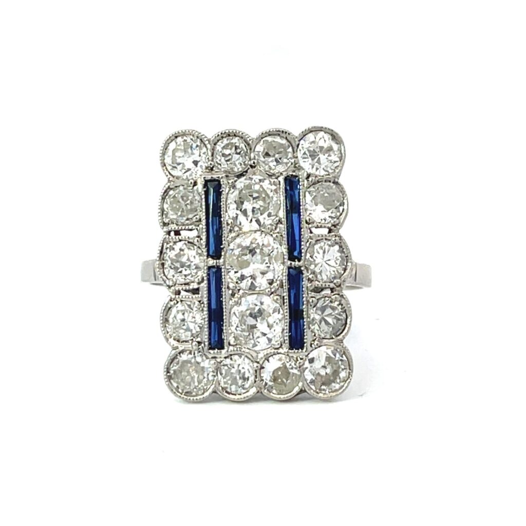 Platinum Art Deco Style Diamond Sapphire Ring