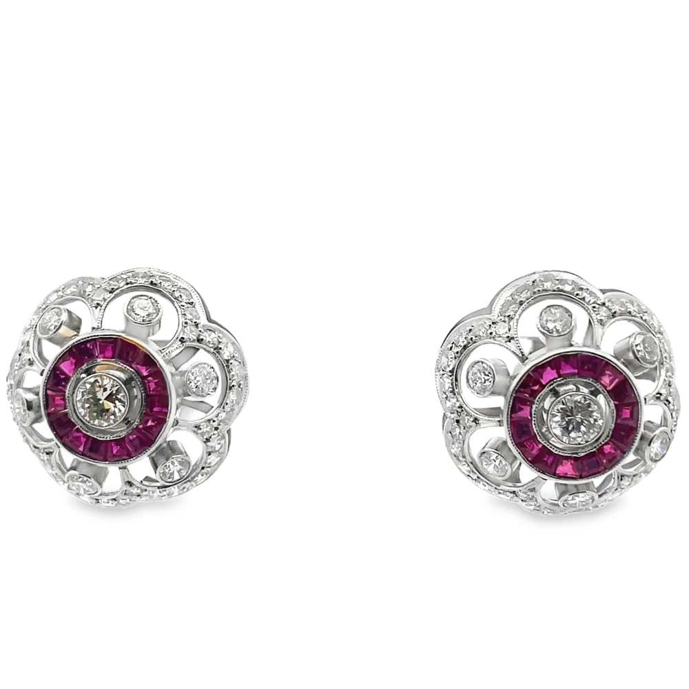 A radiant pairing of deep red and crisp light. These platinum earrings with 14-karat gold clasps are set with 1.50 carats of natural rubies and 2.00 carats of brilliant-cut diamonds. Bold yet graceful, they echo the quiet intensity of classic elegance.
