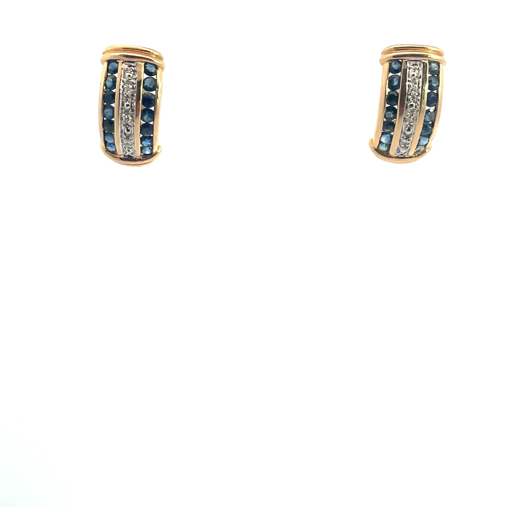 Crafted in 14-karat gold, these earrings are set with natural sapphires and 0.20 carat of diamonds. Weighing 3.70 grams, they offer a subtle interplay of color and light — refined, understated, and effortlessly elegant.