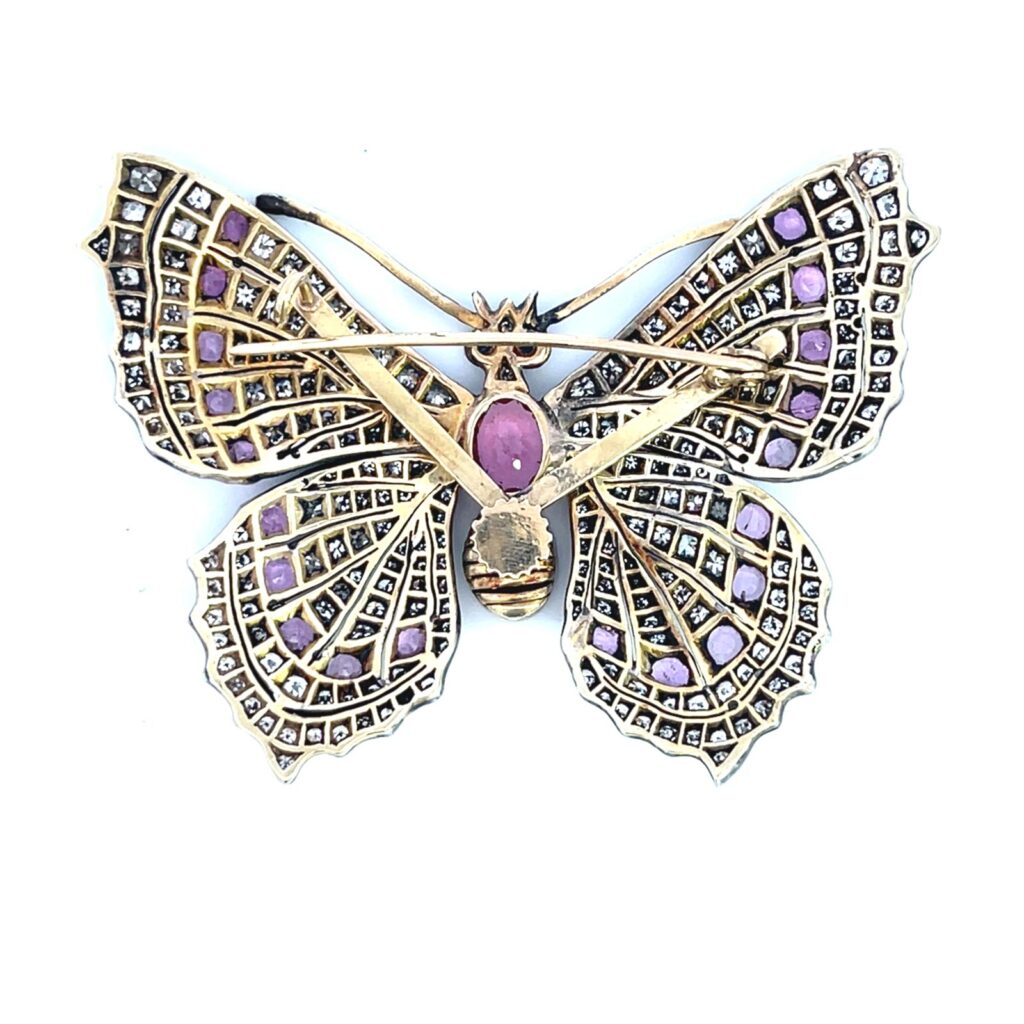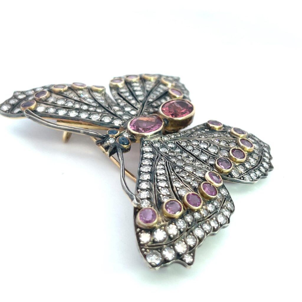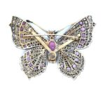 Silver & Gold Diamond Tourmaline Butterfly Brooch