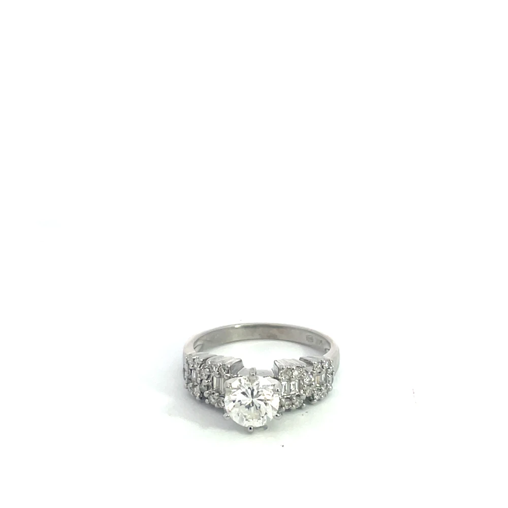 Crafted in 14-karat white gold, this ring features a 0.90-carat central diamond, complemented by an additional 0.60 carats of diamonds. Weighing 4.00 grams, it balances classic elegance with refined brilliance — designed to shine with quiet confidence.