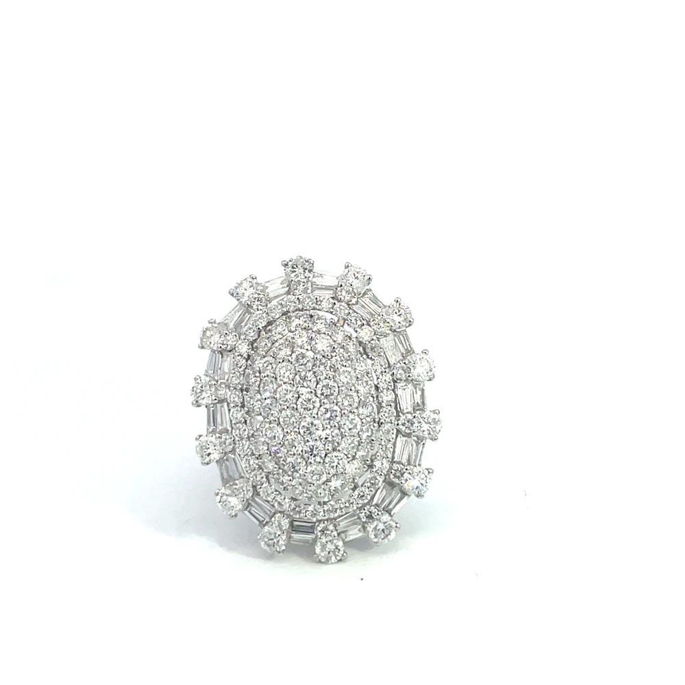 Crafted in 18K white gold, set with approximately 4.00 carats of brilliant and baguette-cut diamonds. Total weight: 10.30 grams. Striking and elegant, ideal for those who appreciate refined luxury.